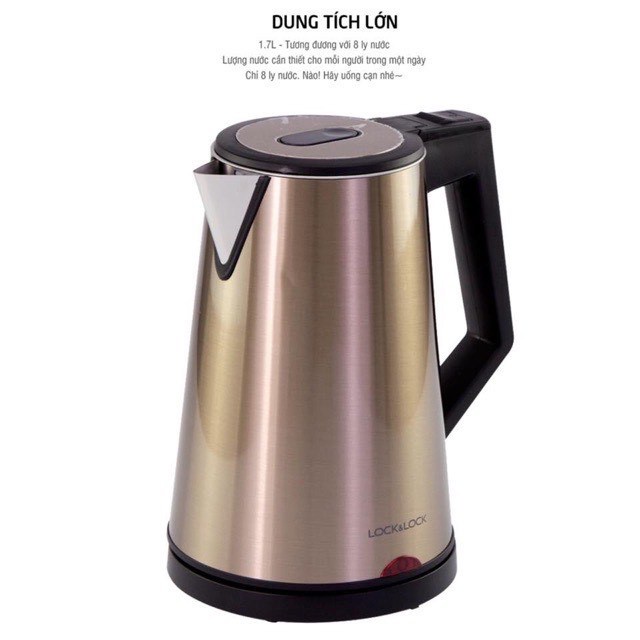 Thiết Bị Điện Gia Dụng > Đồ gia dụng nhà bếp > Ấm đun siêu tốc || Ấm siêu tốc, ấm đun nước Lock&Lock EJK631 vỏ thép 2 lớp dung tích 1,7L công suất 1830W hàng chính hãngCòn hàng