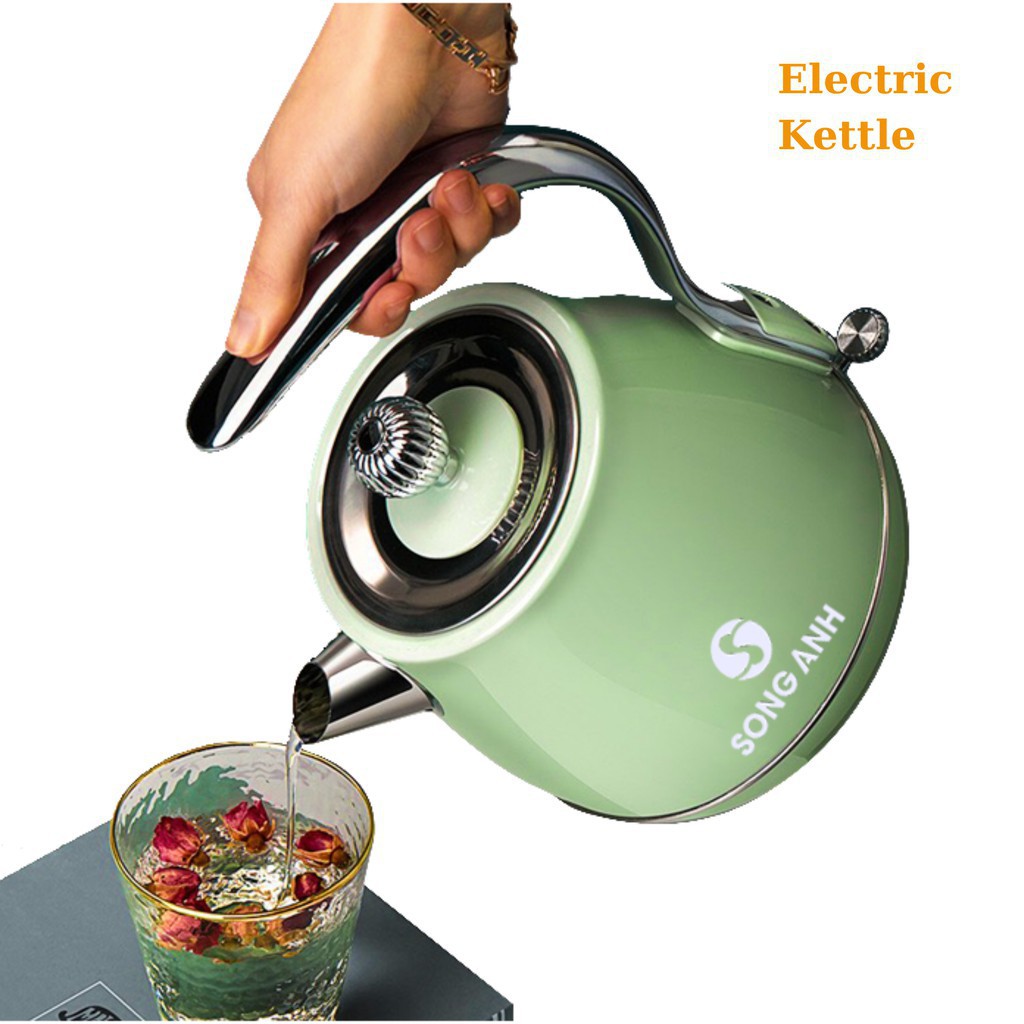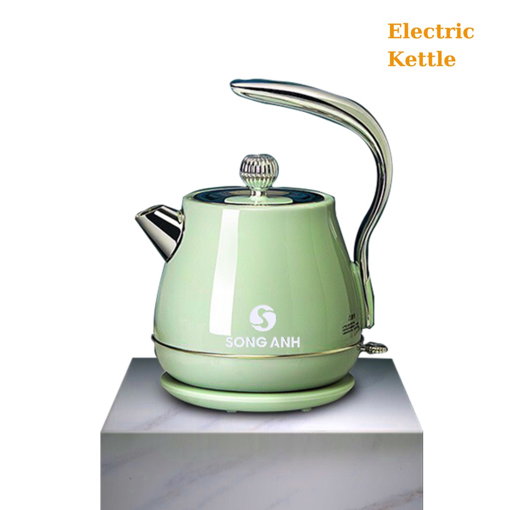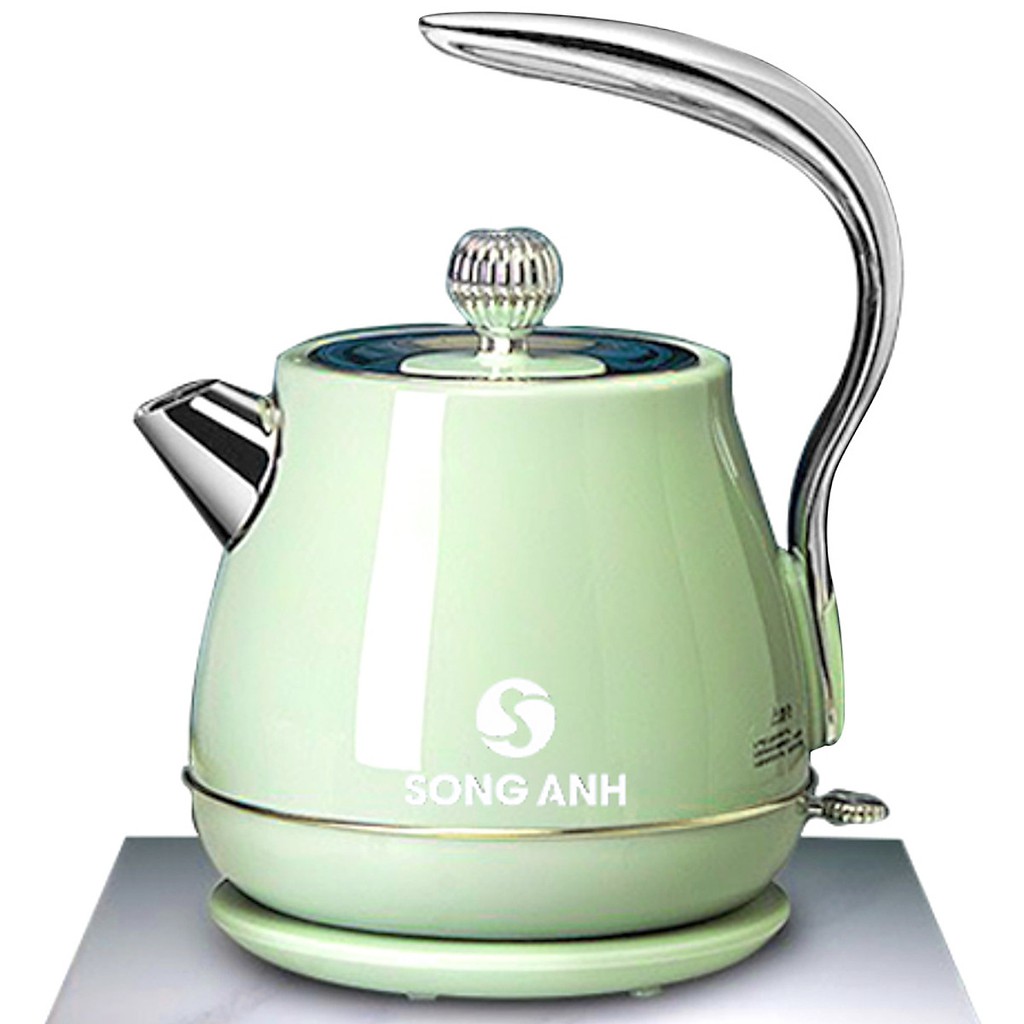 - Ấm Đun Cổ Điển Song Anh có thiết kế Vintage với kiểu dáng trang nhã, thiết kế đẹp, sang trọng, đế nhựa chắc chắn, cách nhiệt, cách điện, có thể xoay 360 độ tiện dụng.