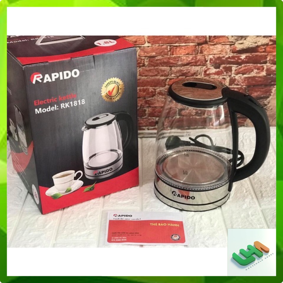 Ấm siêu tốc, ấm thuỷ tinh Rapido 1,8l chính hãng bảo hành 12 tháng