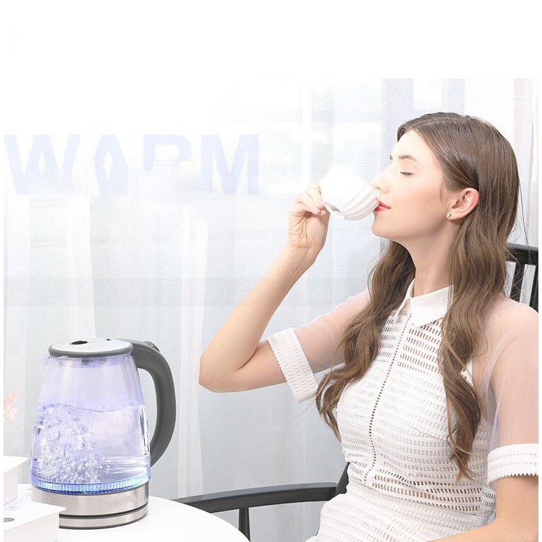 Ấm siêu tốc thủy tinh trong suốt cao cấp dung tích 2.0L l Ấm thủy tinh trong suốt siêu tốc, tiết kiệm điện, có đèn LED