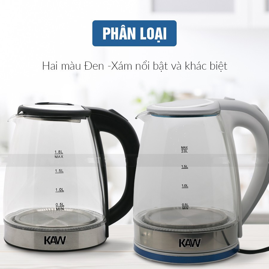 Thiết Bị Điện Gia Dụng > Đồ gia dụng nhà bếp > Ấm đun siêu tốc || ấm siêu tốc, bình đun siêu tốc thủy tinh trong suốt CAO CẤP KAW Dung tích 2.0L - tiết kiệm điện, đun siêu tốc, có đèCòn hàng