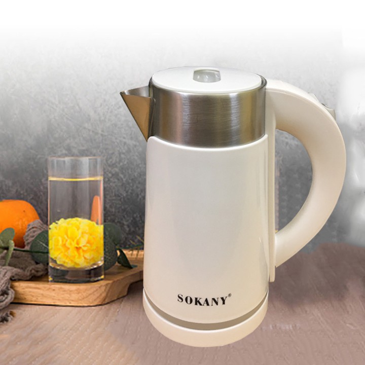 Ấm siêu tốc SOKANY 1L sở hữu thiết kế hiện đại với phần vỏ inox và nhựa cao cấp chắc chắn, tạo vẻ sang trọng cho sản phẩm.