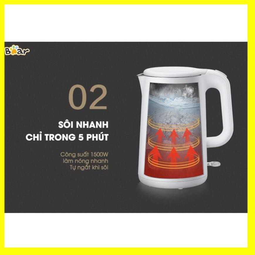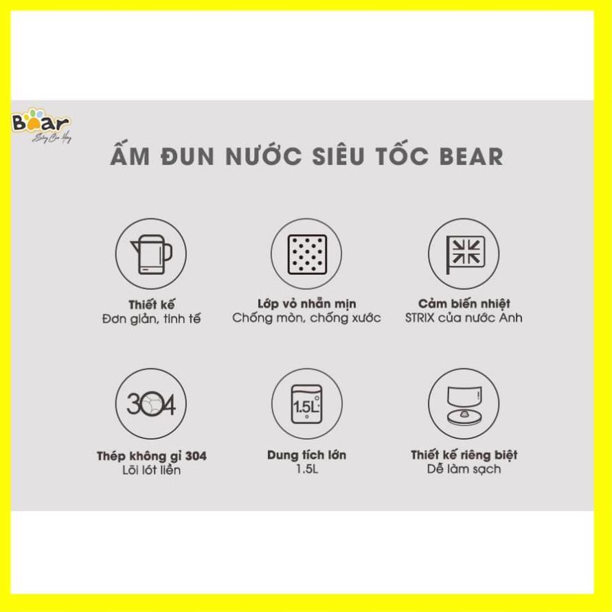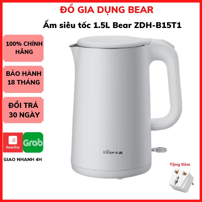 Ấm Siêu Tốc, Bình Đun Nước Siêu Tốc 1.5 lít Bear ZDH-B15T1, Công Suất 1500W, Đun Nước Siêu Nhanh, Sang Trong, BH 18 th
