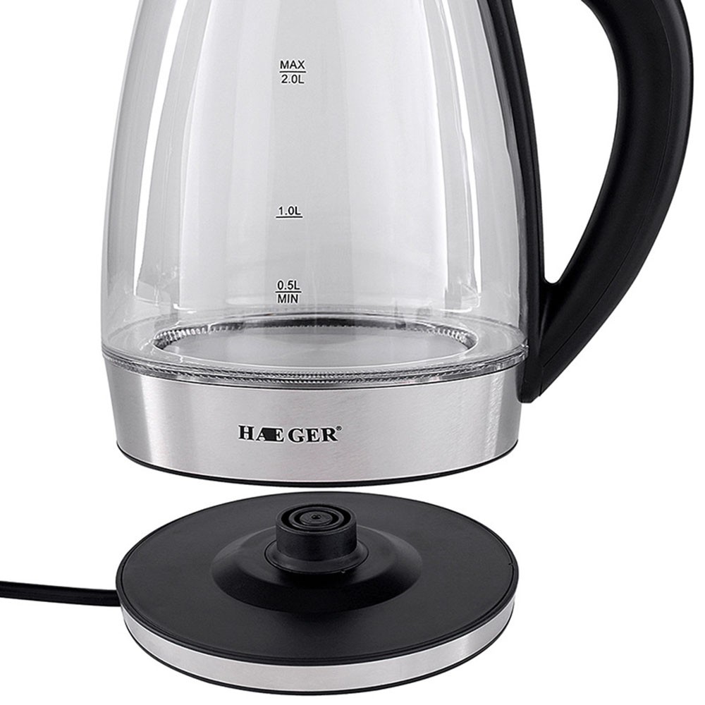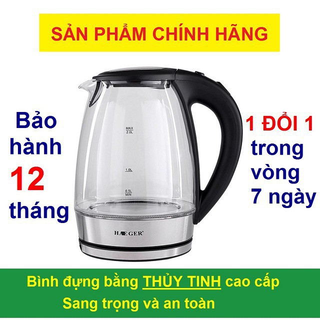 Ấm siêu tốc, bình đun nước siêu tốc thủy tinh 2L- Haeger- 2000W - BẢO HÀNH 12 THÁNG