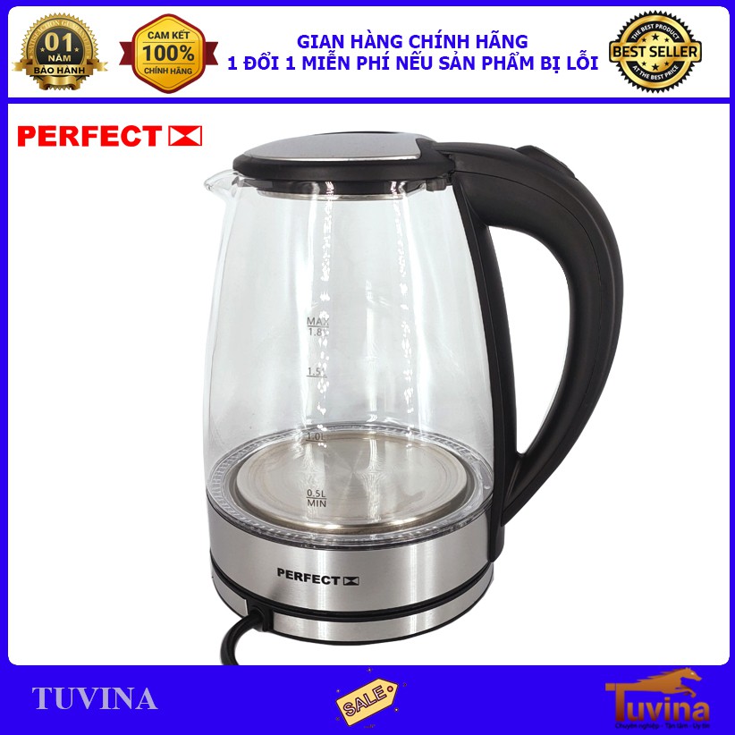 Thiết Bị Điện Gia Dụng > Đồ gia dụng nhà bếp > Ấm đun siêu tốc || Ấm Siêu Tốc - Bình Đun Nước Siêu Tốc Thủy Tinh 1.8L 1.8 Lít Perfect PF-IN19 - Hàng Chính Hãng (Bảo Hành 12 Tháng)Còn hàng
