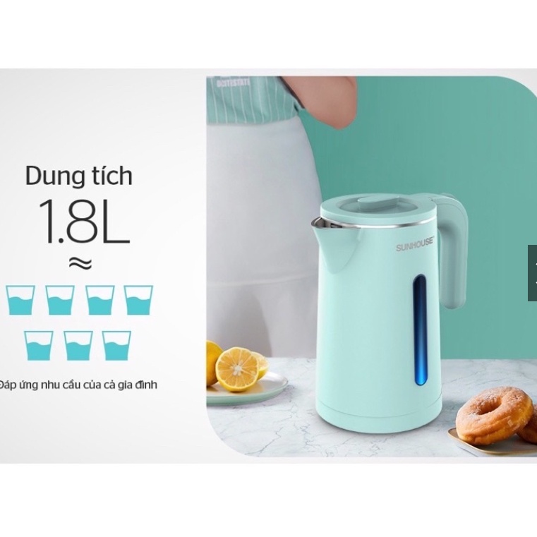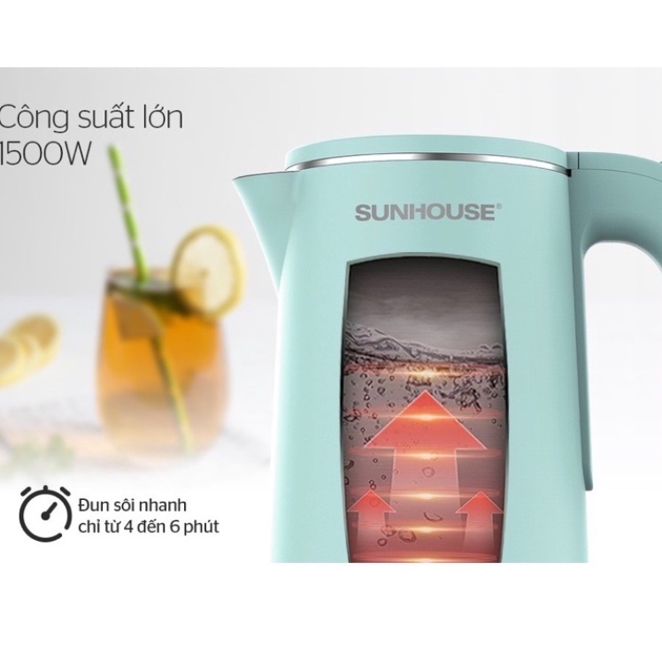 Thiết Bị Điện Gia Dụng > Đồ gia dụng nhà bếp > Ấm đun siêu tốc || Ấm siêu tốc, bình đun siêu tốc Sunhouse inox 2 lớp, dung tích 1,8 lit, SHD1351Còn hàng