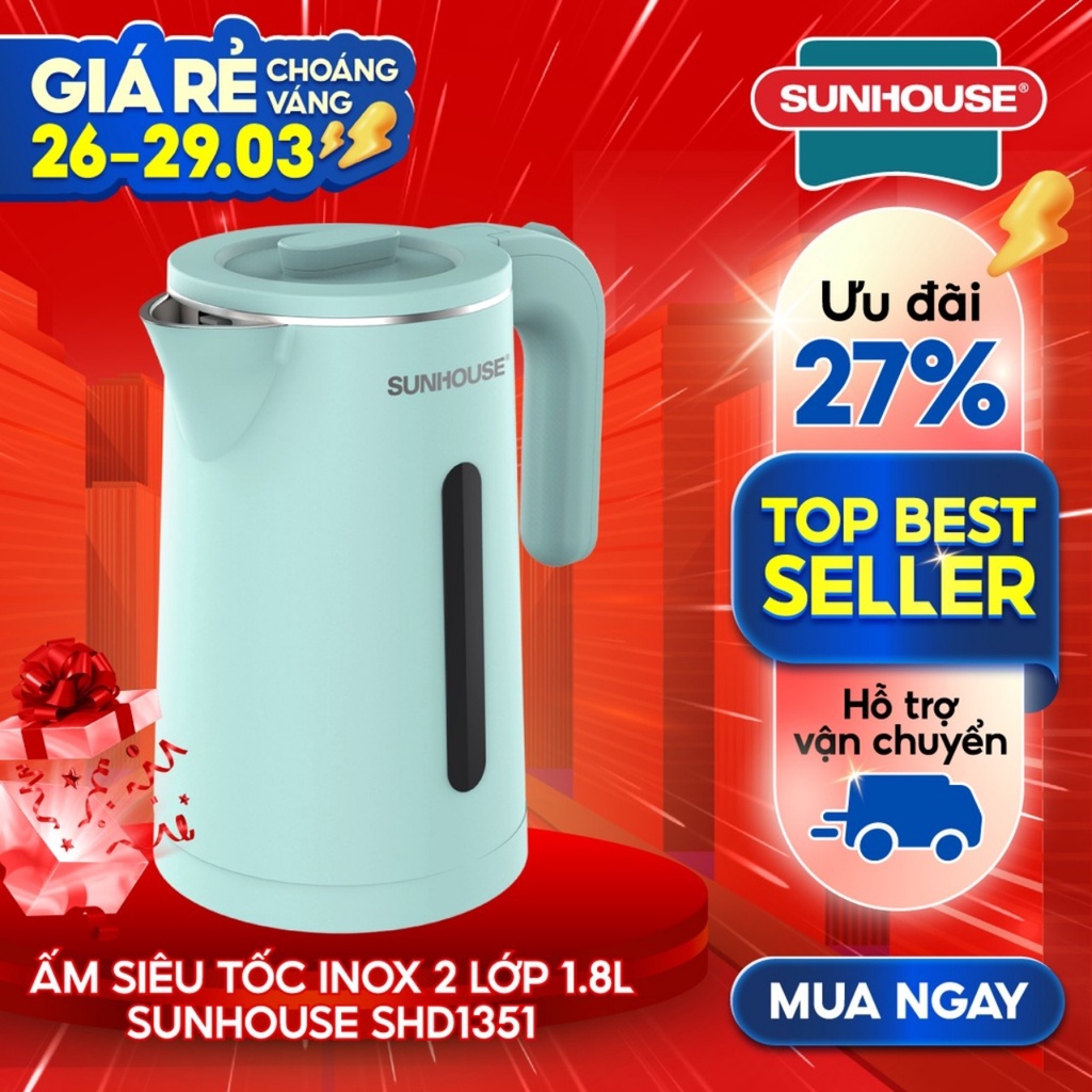 Thiết Bị Điện Gia Dụng > Đồ gia dụng nhà bếp > Ấm đun siêu tốc || ẤM SIÊU TỐC. BÌNH ĐUN SIÊU TỐC CAO CẤP INOX 2 LỚP 1.8L SUNHOUSE SHD1351 BH 12 THÁNGCòn hàng
