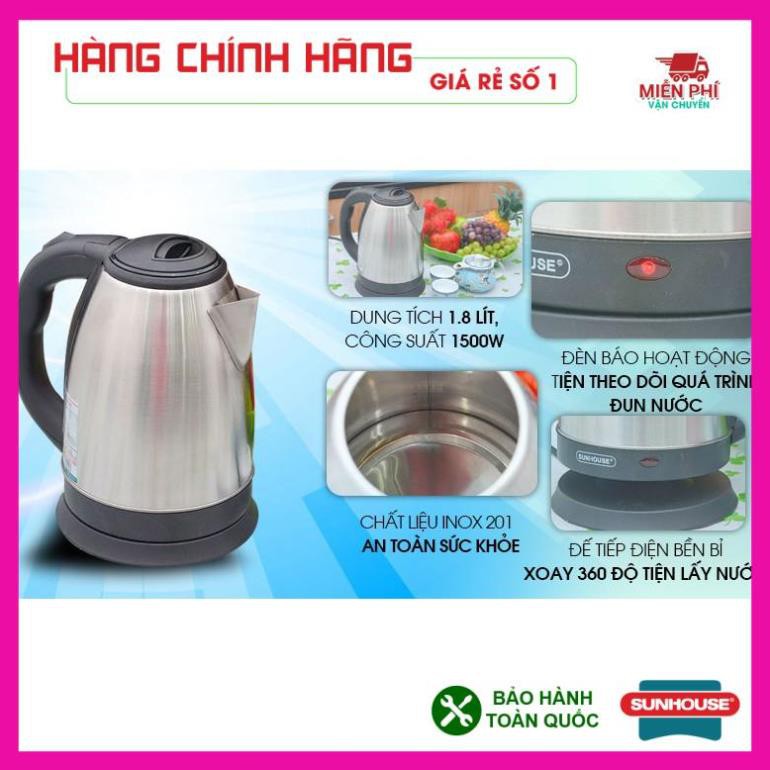 Thiết Bị Điện Gia Dụng > Đồ gia dụng nhà bếp > Ấm đun siêu tốc || Ấm siêu tốc, Bình đun siêu tốc Sunhouse SHD1182, 1,8 LÍT, inox 2 lớp, đun sôi nhanh, tự động ngắt khi sôi.Còn hàng