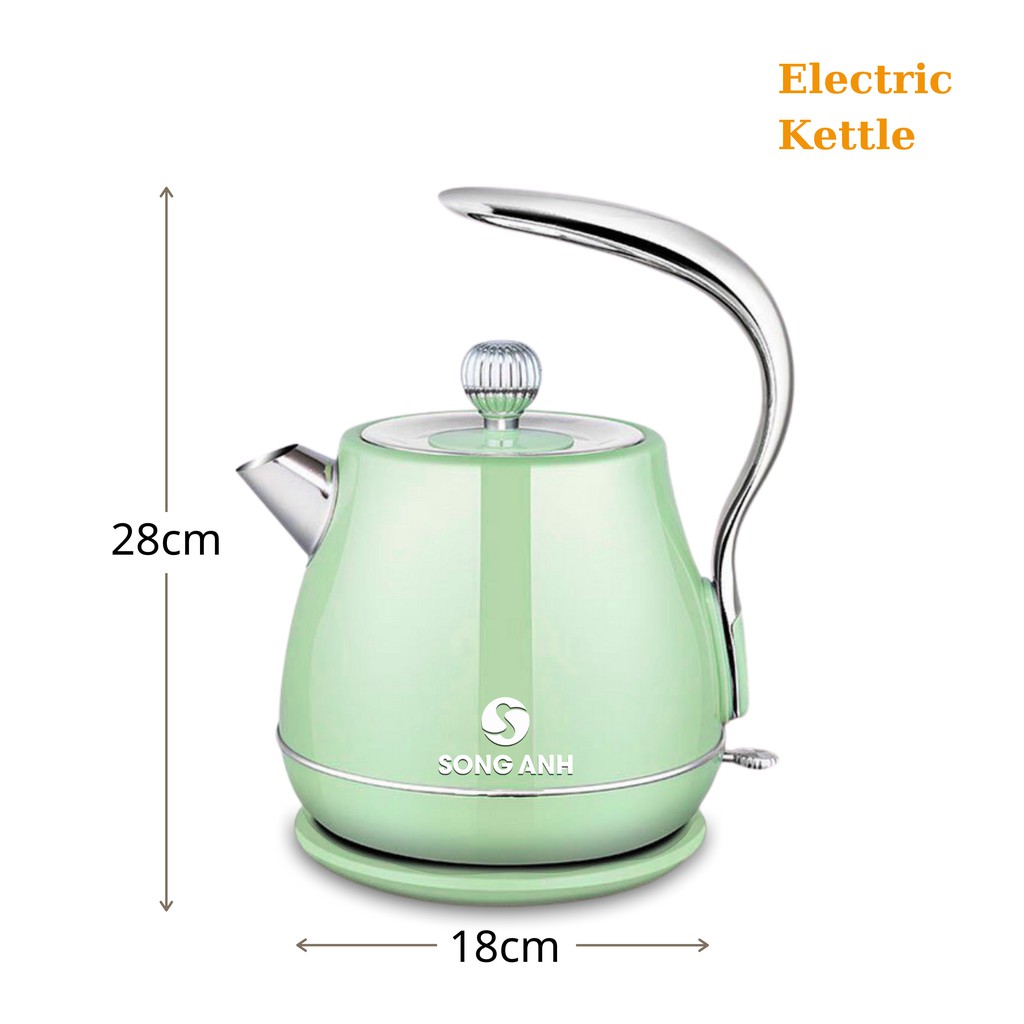 * ƯU ĐIỂM SẢN PHẢM : Ấm Siêu Tốc, Bình Nước Siêu Tốc Dung Tích 1.8L chất liệu INOX 304- Ấm Đun Nước Cổ Điển Song Anh có thiết kế Vintage với kiểu dáng trang nhã, thiết kế đẹp, sang trọng, đế nhựa chắc chắn, cách nhiệt, cách điện, có thể xoay 360 độ tiện dụng.
