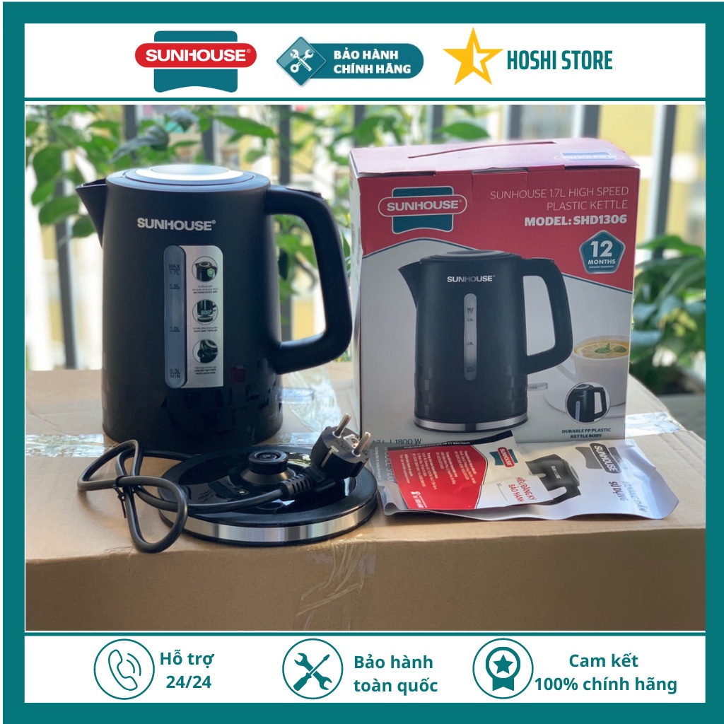 Thiết Bị Điện Gia Dụng > Đồ gia dụng nhà bếp > Ấm đun siêu tốc || Ấm siêu tốc, bình siêu tốc nhựa cao cấp 1.7L SUNHOUSE SHD1306, bảo hành toàn quốc 12 thángCòn hàng