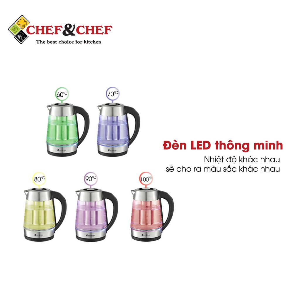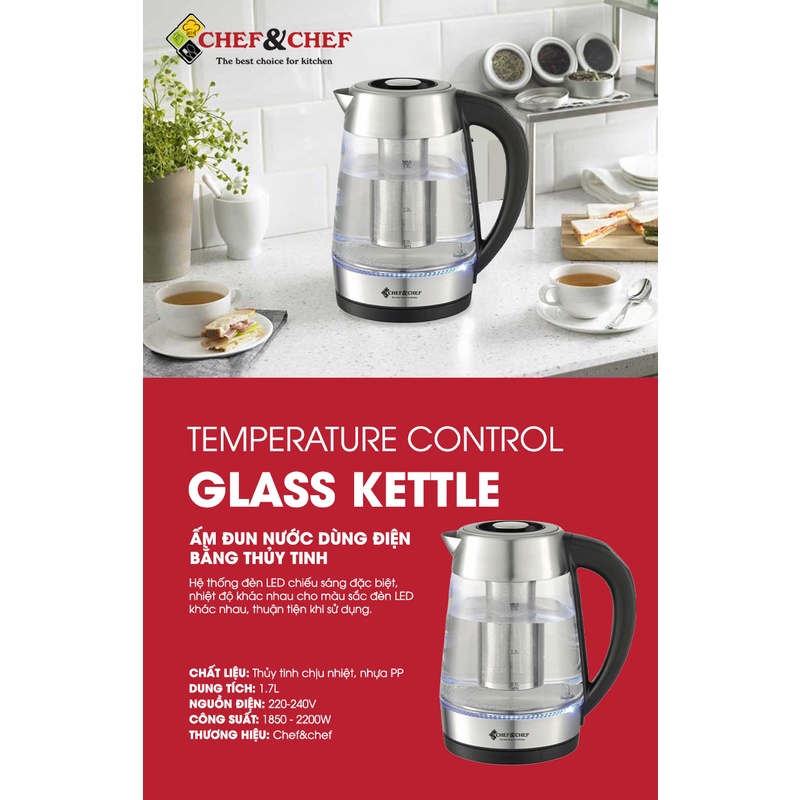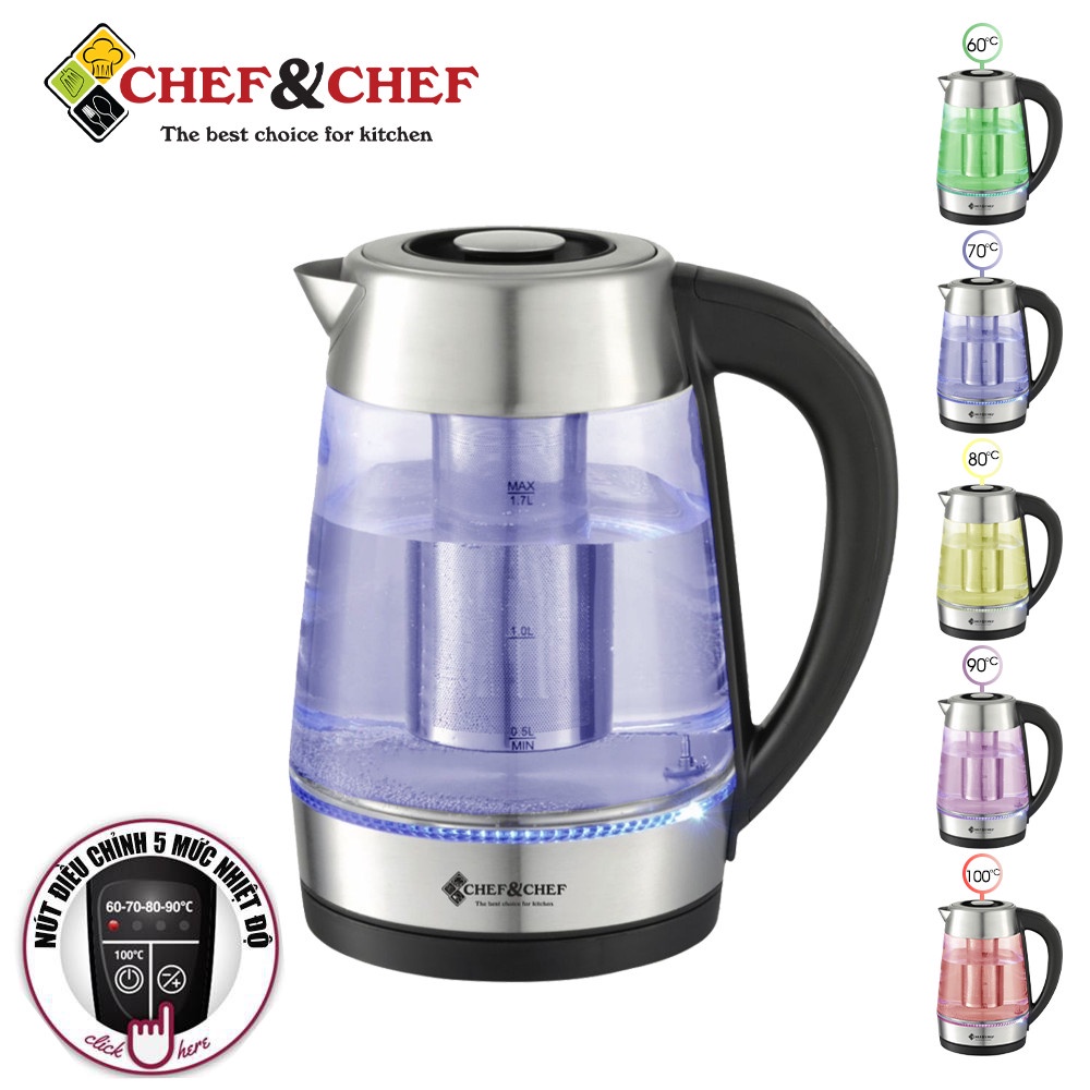 Thiết Bị Điện Gia Dụng > Đồ gia dụng nhà bếp > Ấm đun siêu tốc || [Mã ELHADEV giảm 4% đơn 300K] Ấm siêu tốc bình siêu tốc thủy tinh CHEF&CHEF CH1703D điều khiển nhiệt độ đun.Còn hàng