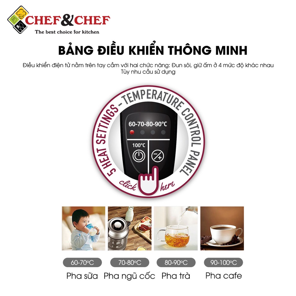 Thương hiệu: Chef&Chef | Xem thêm các sản phẩm Bình đun siêu tốc của Chef&ChefMô tả ngắn