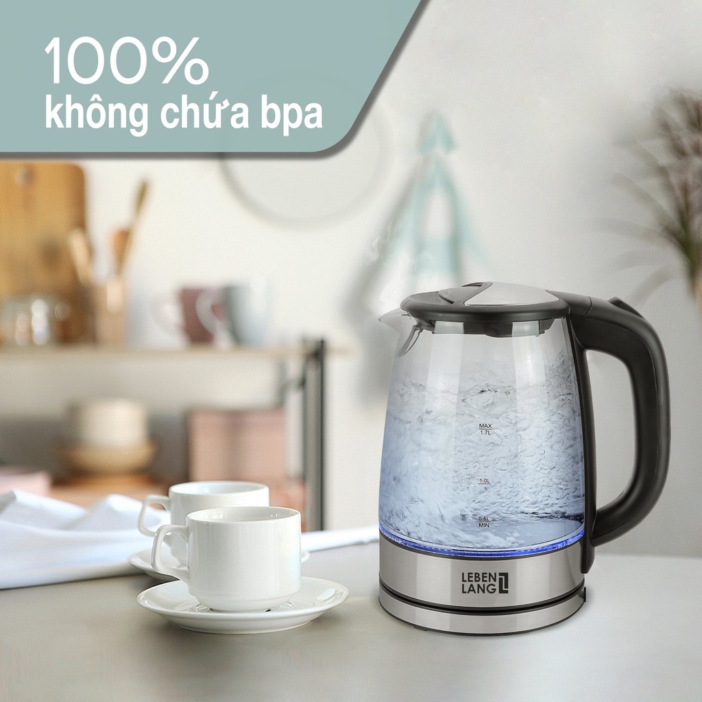 Ấm siêu tốc bình siêu tốc thủy tinh LEBENLANG LBL2879 1.7 lít công suất 2200W bảo hành đổi trả trong 2 năm