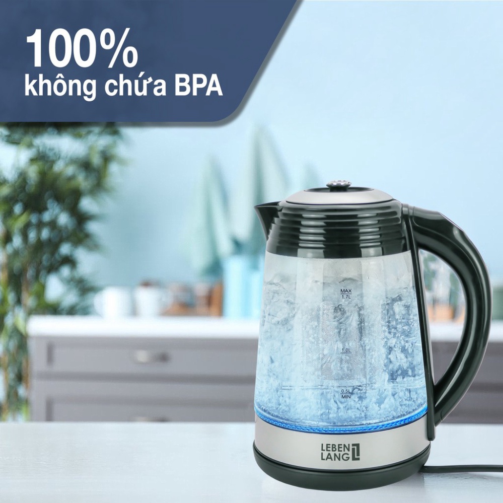 Ấm siêu tốc bình siêu tốc thủy tinh LEBENLANG LBT2676 điều khiển nhiệt độ đun, bảo hành đổi trả trong 2 năm