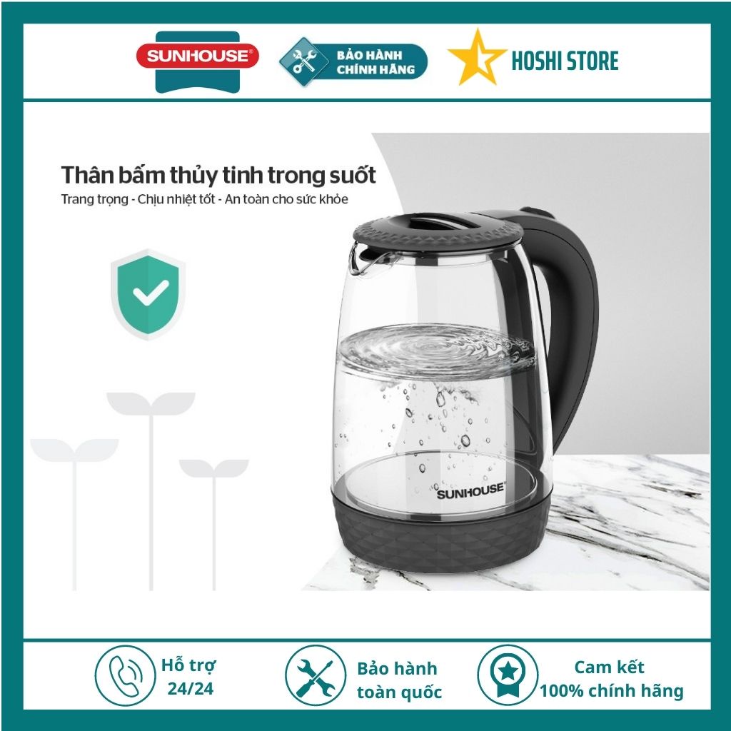 Thiết Bị Điện Gia Dụng > Đồ gia dụng nhà bếp > Ấm đun siêu tốc || [CAO CẤP] ẤM SIÊU TỐC. BÌNH SIÊU TỐC THỦY TINH CAO CẤP SUNHOUSE SHD1215B, bảo hành toàn quốc 12 thángCòn hàng
