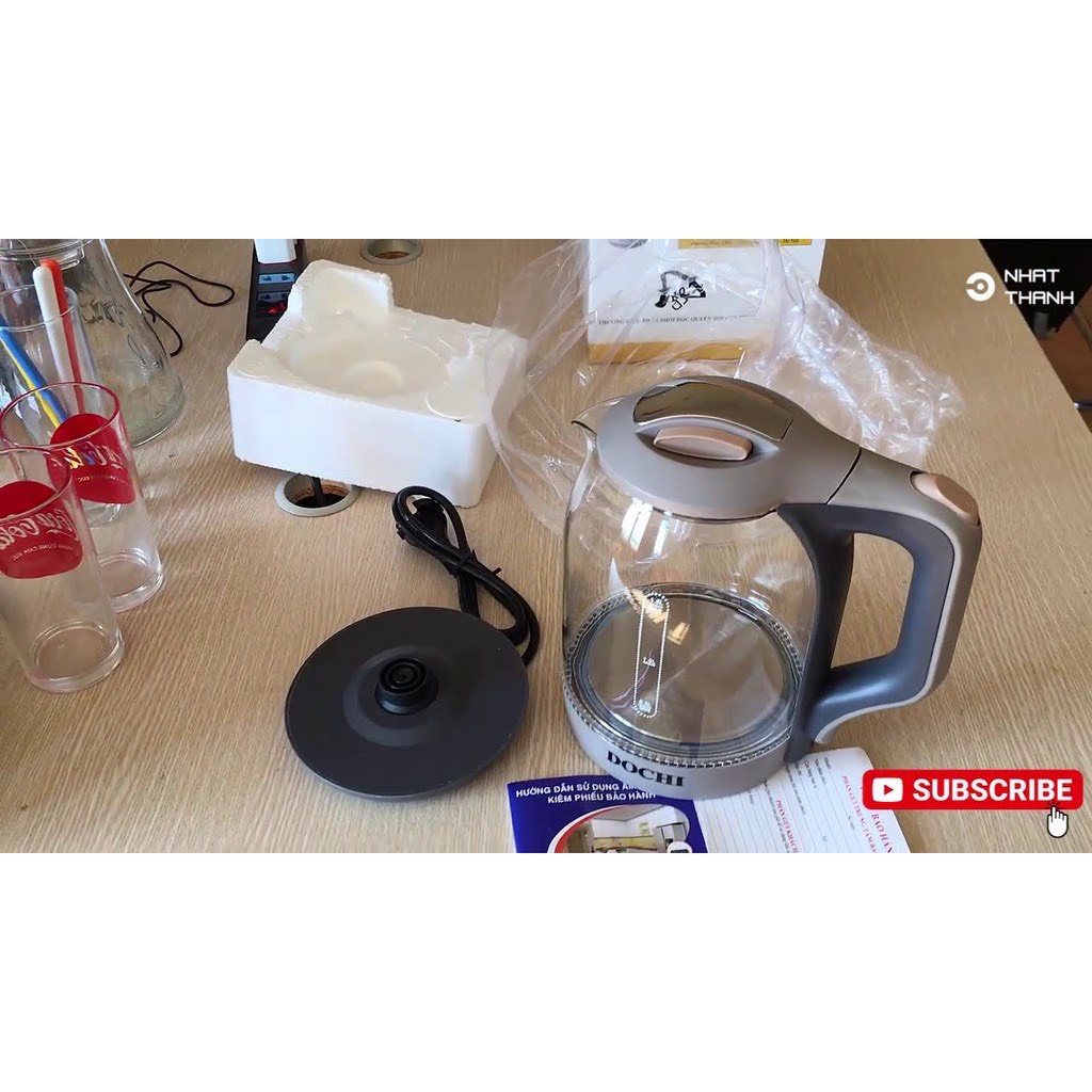 Giới thiệu Ấm siêu tốc Bình siêu tốc thủy tinh DOCHI dùng để đun nước 1,8 lít