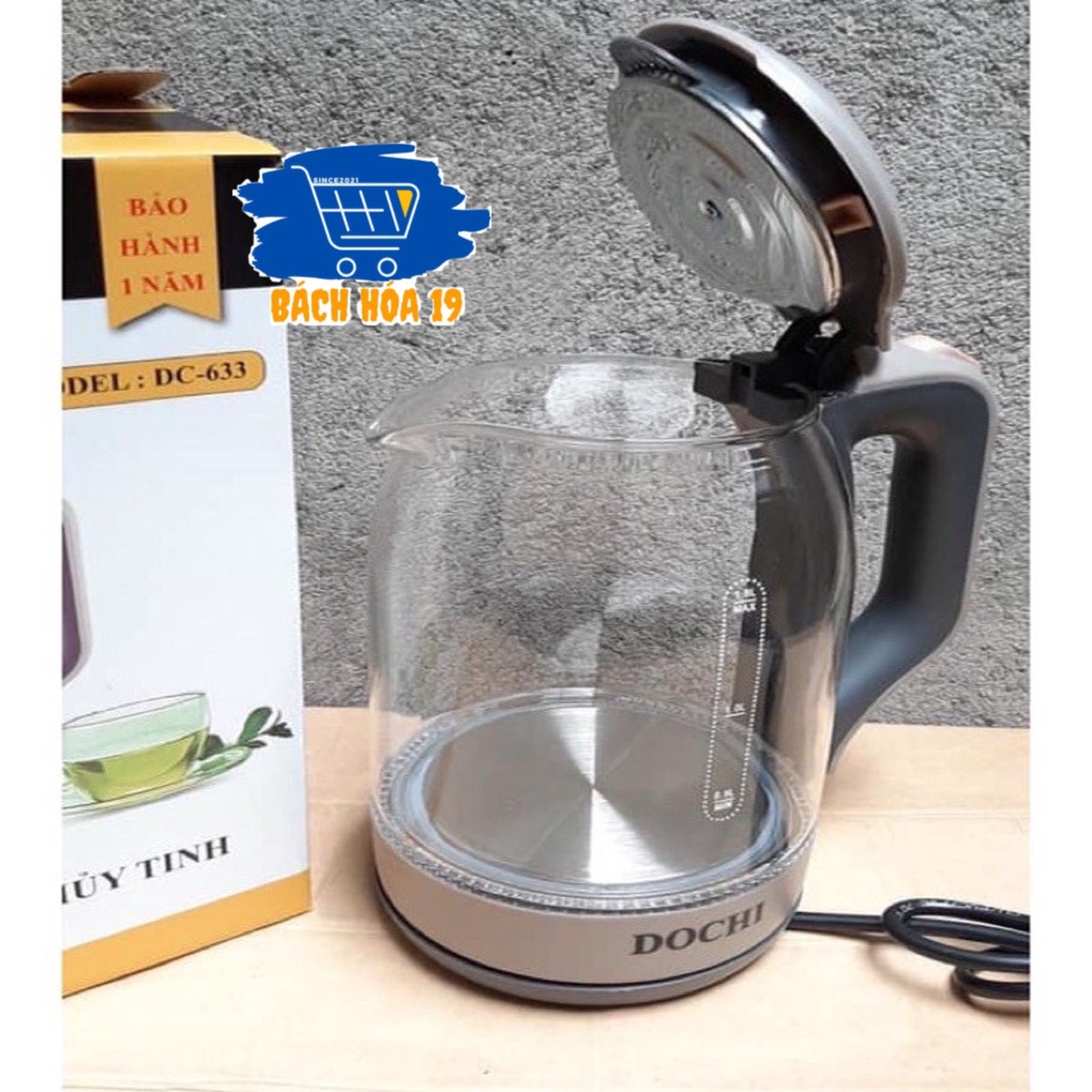 Ấm siêu tốc Bình siêu tốc thủy tinh DOCHI dùng để đun nước 1,8 lít