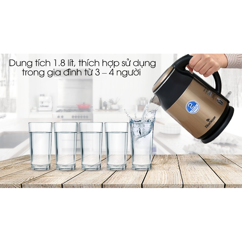 Ấm siêu tốc BlueStone KTB-3369 1,8L, 2 lớp inox 304 an toàn điều khiển Strix