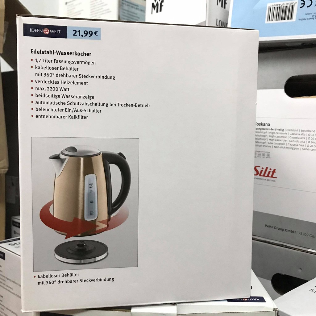 Thiết Bị Điện Gia Dụng > Đồ gia dụng nhà bếp > Ấm đun siêu tốc || ẤM SIÊU TỐC ĐỨC IDEEN WELT EDELSTAHL WASERKOCHER - Nguồn hàng ĐứcCòn hàng