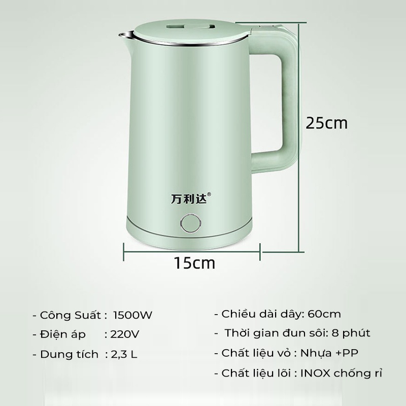 Ấm siêu tốc dung tích 2300ml, CHỈ 3 PHÚT SÔI, tự ngắt khi sôi, cách nhiệt tốt, bình đun nước an toàn, tiện lợi