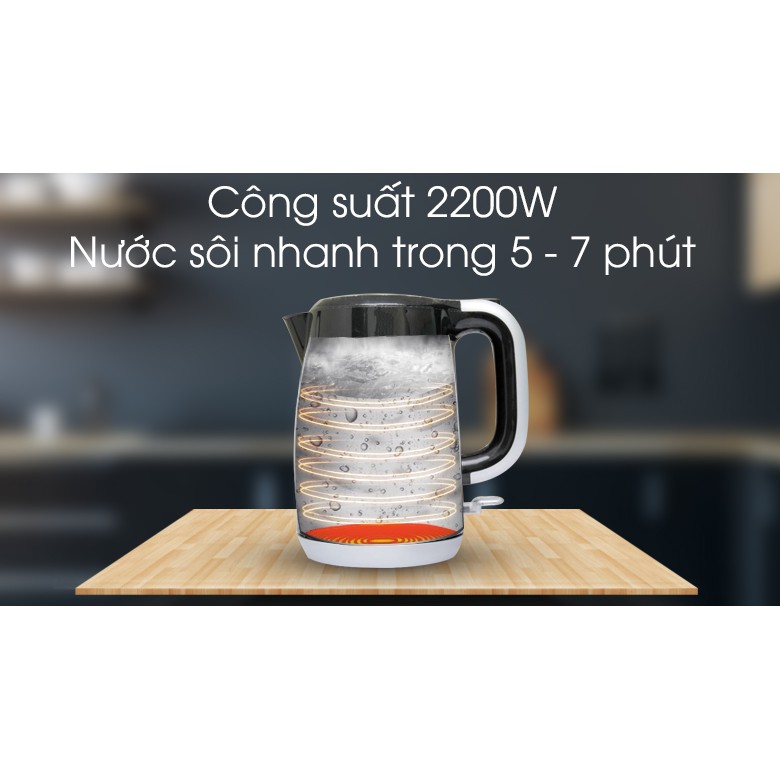 3 chế độ tự ngắt điện: Khi nước sôi, cạn nước, nhấc bình khỏi chân đế.