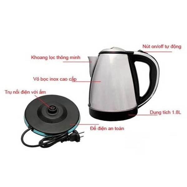 [XẢ KHO] Ấm Siêu Tốc Ấm Đun Nước Inox 1,8L Giá Rẻ, Bền, ĐẹpSHOP CAM KẾT: ĐỔI MỚI SẢN PHẨM NẾU KHI NHẬN ĐƯỢC SẢN PHẨM BỊ VỠ HỎNG