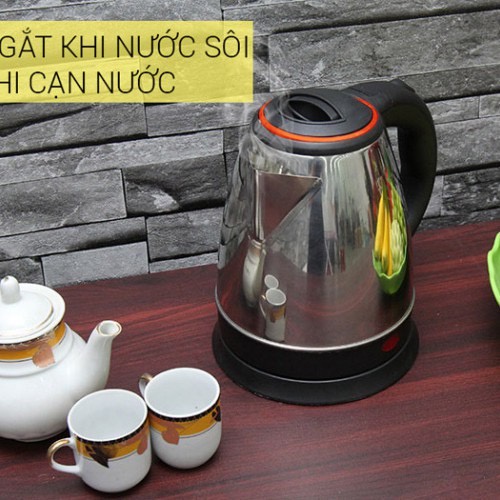 - Thân ấm đun nước bằng inox 304 sáng bóng, không gỉ