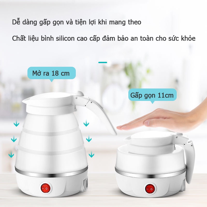Ấm siêu tốc gấp gọn công suất 600W dung tích 500mL , tiện lợi khi mang đi du lịch.THÔNG TIN SẢN PHẨM: