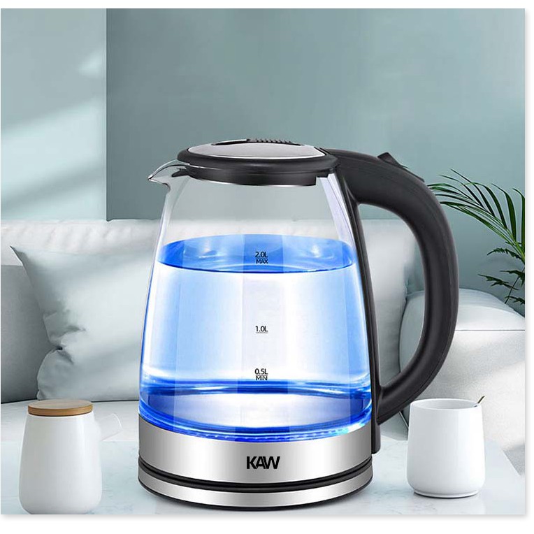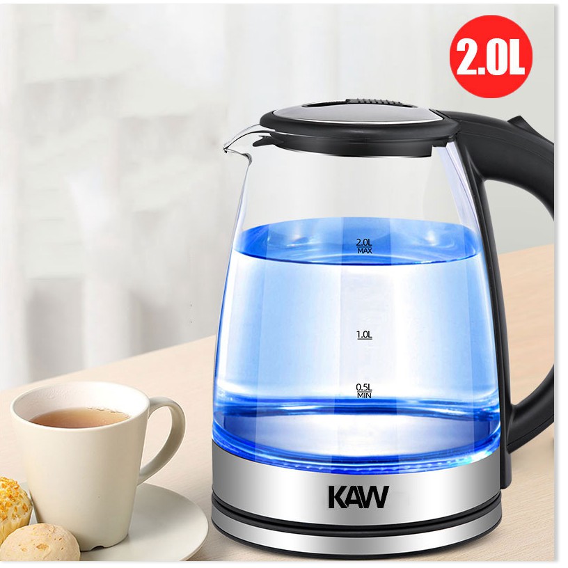Ấm Siêu Tốc Giá Rẻ KAW RK1818 ✔️Chính Hãng✔️ dung tích 2L, tiết kiệm điện, bình thủy tinh trong suốt, nước nóng siêu nha