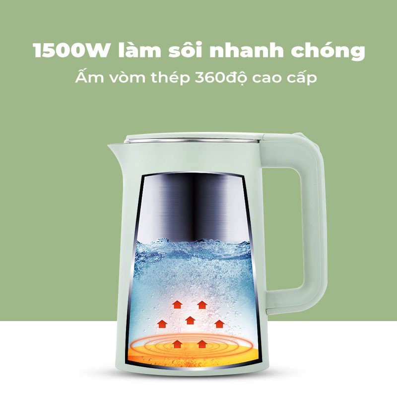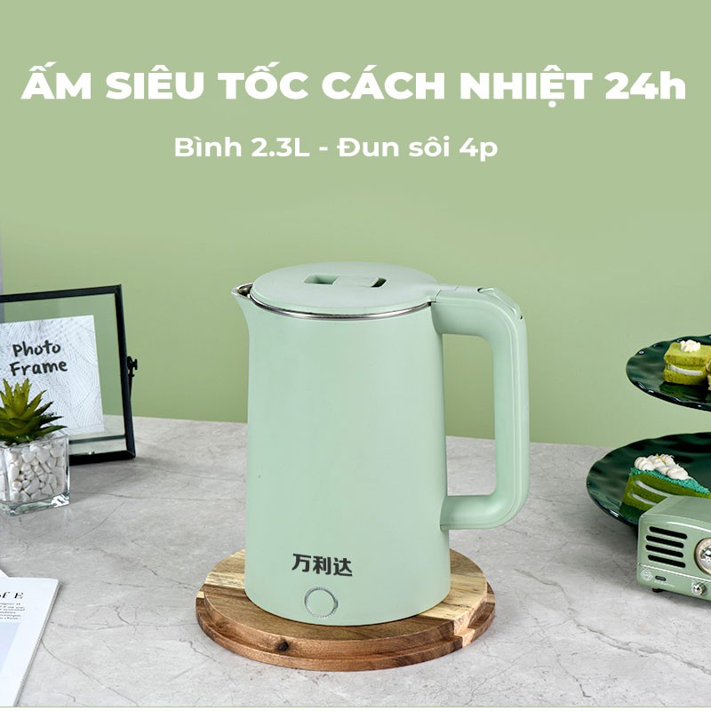 Ấm siêu tốc giữ nhiệt - Ấm đun nước Inox 304 đa năng dung tích 2.3 Lít công suất 1500W bảo hành 6 tháng