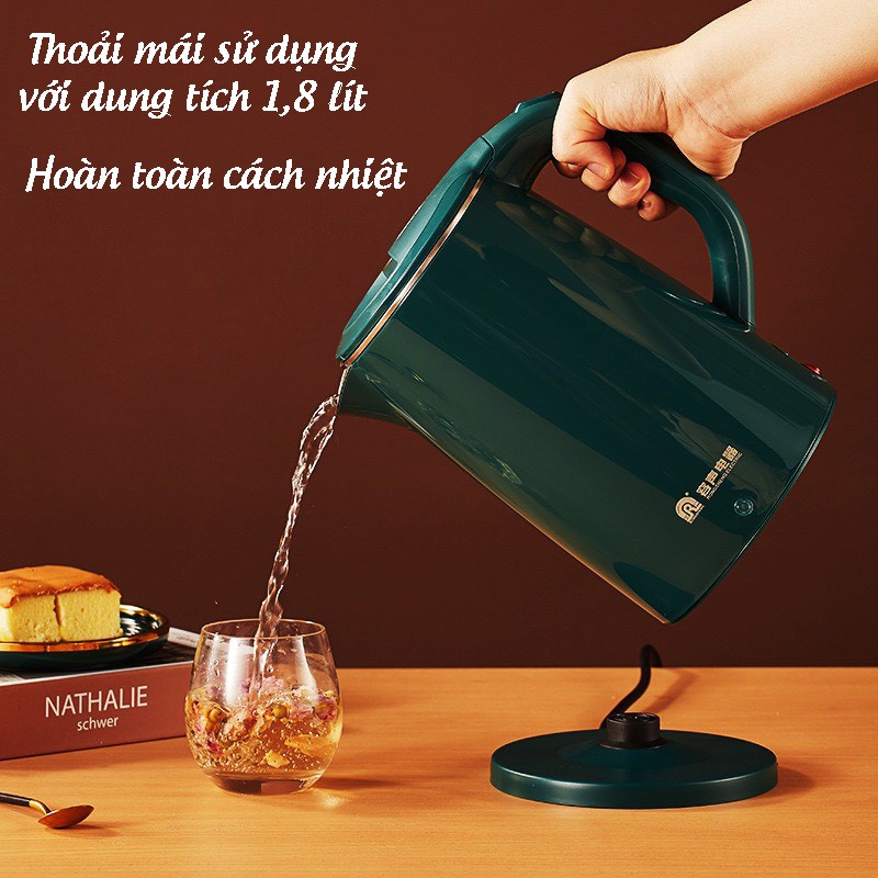 Ấm Siêu Tốc Giữ Nhiệt - Ấm Đun Nước Inox 304 Đa Năng Dung Tích 1.8 Lít Công Suất 1500W Bảo Hành 6 Tháng