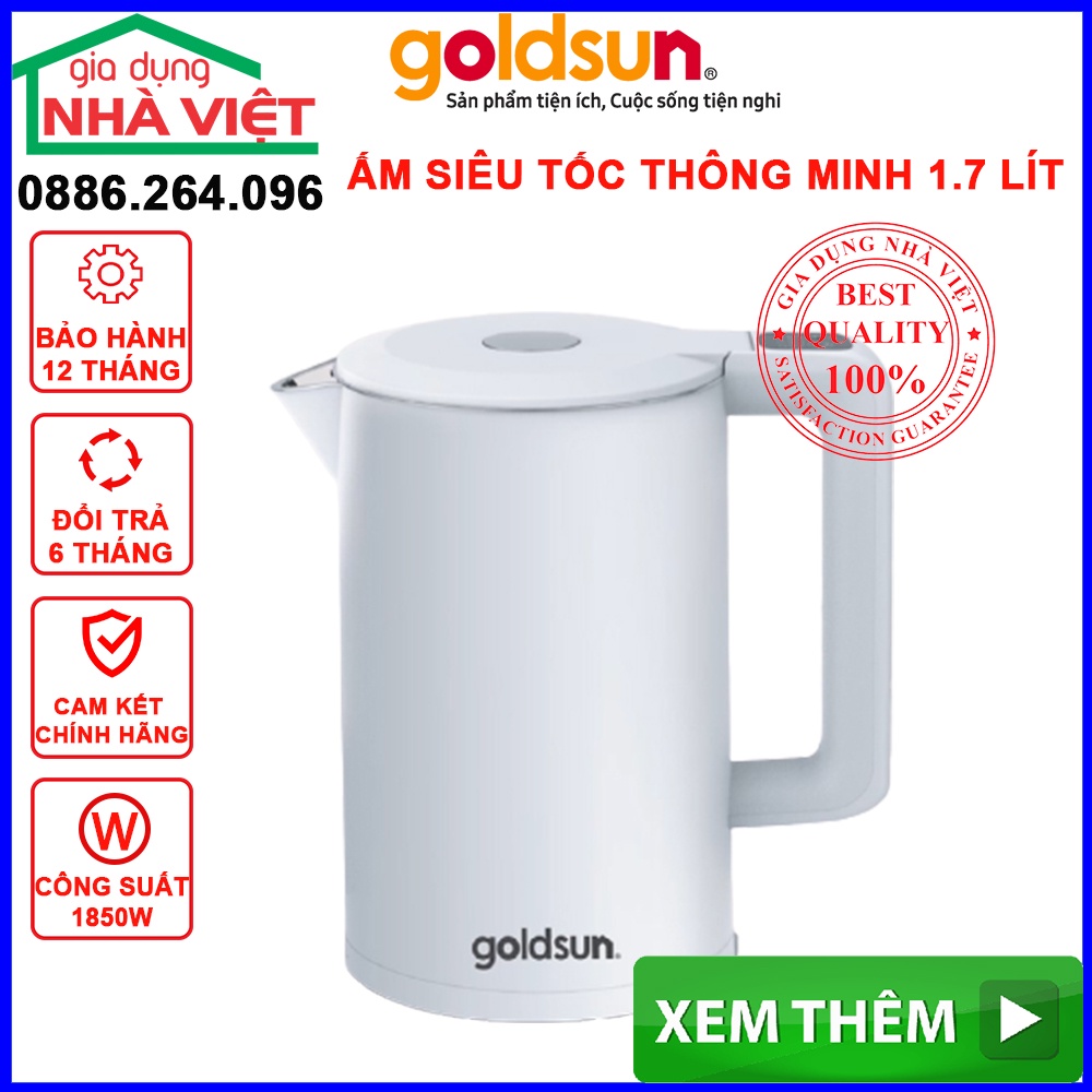 Ấm siêu tốc GOLDSUN ,Ấm đun siêu tốc 2 lớp cao cấp, điện tư thông minh, bảo hành 12 tháng đổi mới 6 tháng.10101225