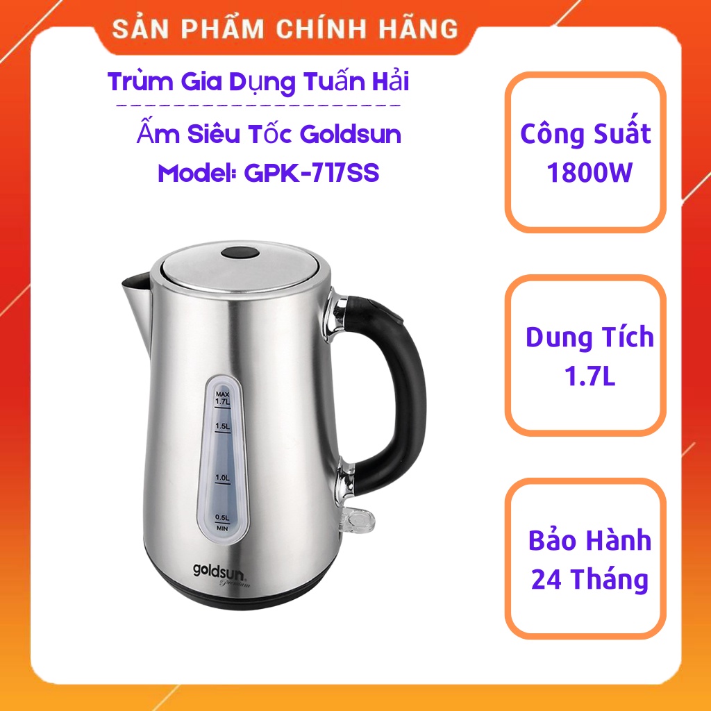 Thiết Bị Điện Gia Dụng > Đồ gia dụng nhà bếp > Ấm đun siêu tốc || Ấm siêu tốc GOLDSUN GPK-717SS, dung tích 1.7L, chất liệu inox 304 cao cấpCòn hàng