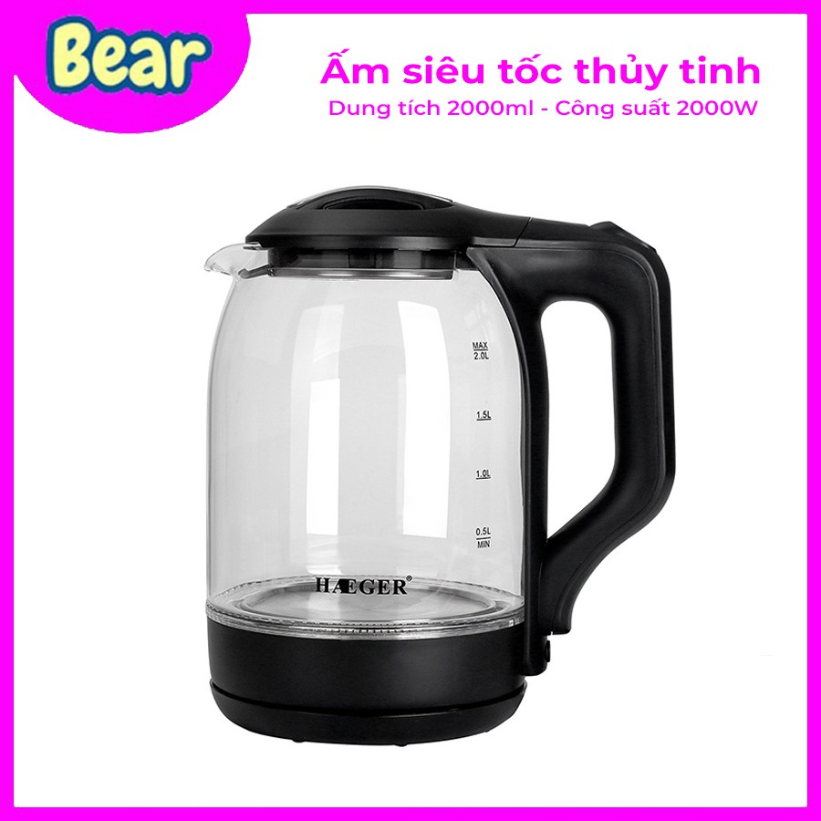 Thiết Bị Điện Gia Dụng > Đồ gia dụng nhà bếp > Ấm đun siêu tốc || Ấm siêu tốc HAEGER 2 lít, ấm siêu tốc thủy tinh trong suốt công suất 2000WCòn hàng