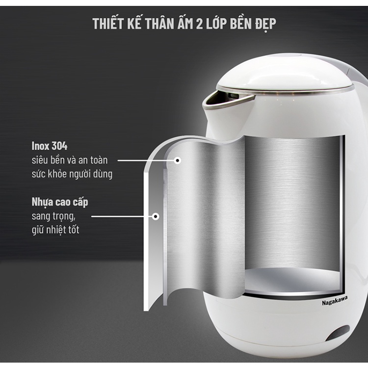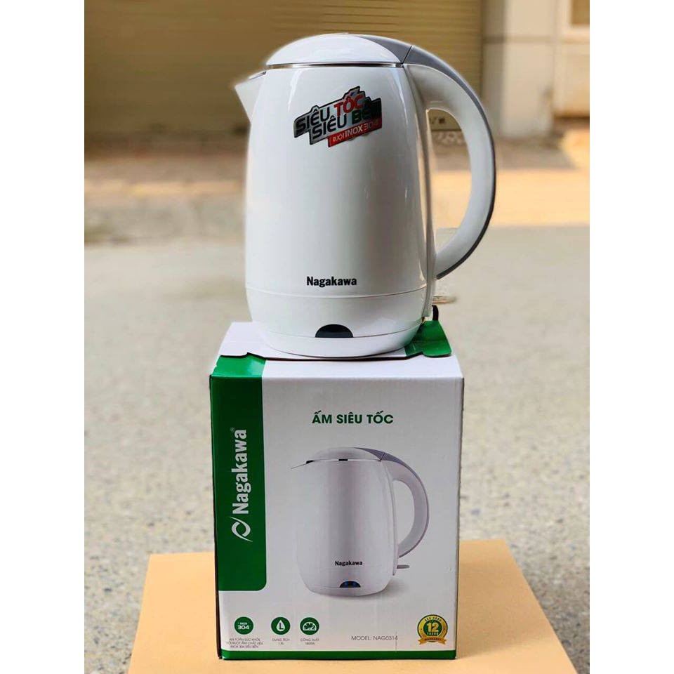 Ấm siêu tốc hai lớp 1,8l nakawwa 0314 siêu sịn hàng chuẩn đảm bảo an toàn tự ngắt điện khi nước sôi