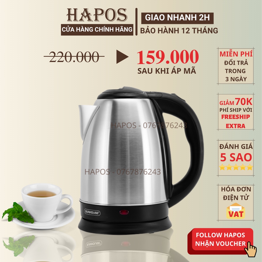 Ấm siêu tốc là sản phẩm tiện lợi không thể thiếu tại các gia đình hiện nay. Chỉ trong vài phút, bạn đã có được nước nóng để sử dụng trong sinh hoạt hàng ngày như pha trà, cafe,... Hơn nữa, bạn có thể đun một chút nước đủ dùng thay vì phải đun nhiều nước như kiểu ấm điện truyền thống. Đây cũng chính là một trong những ưu điểm vượt trội của ấm đun siêu tốc SUNHOUSE nói chung và sản phẩm của HAPPY TIME HTD1081 nói riêng