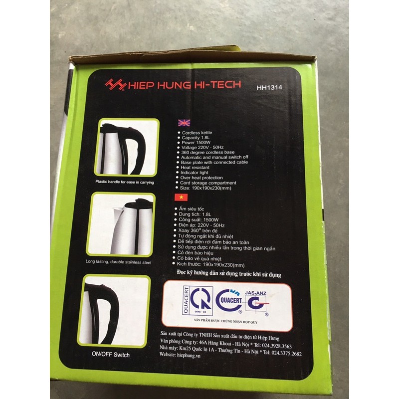 Tên sản phẩm: Ấm đun siêu tốc Hiệp Hưng HH– 1314Xuất xứ: Việt Nam.