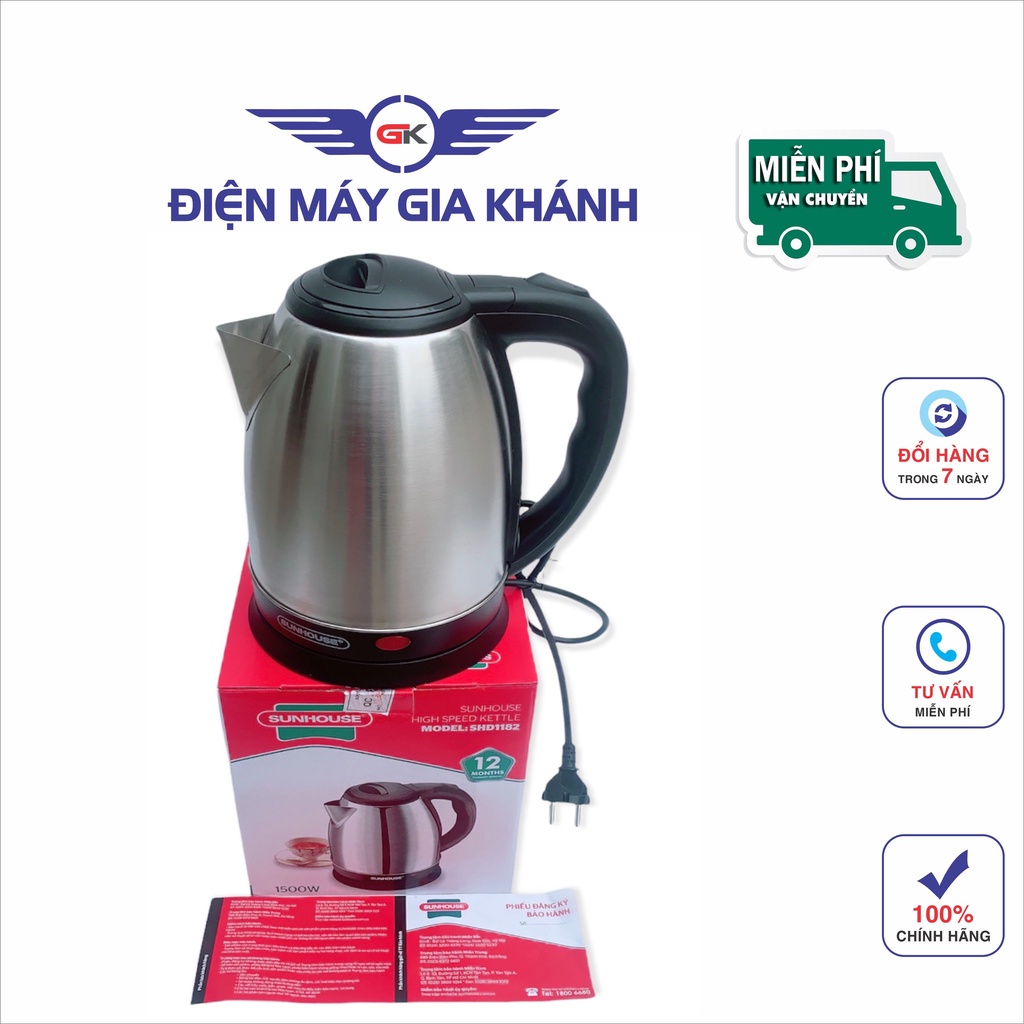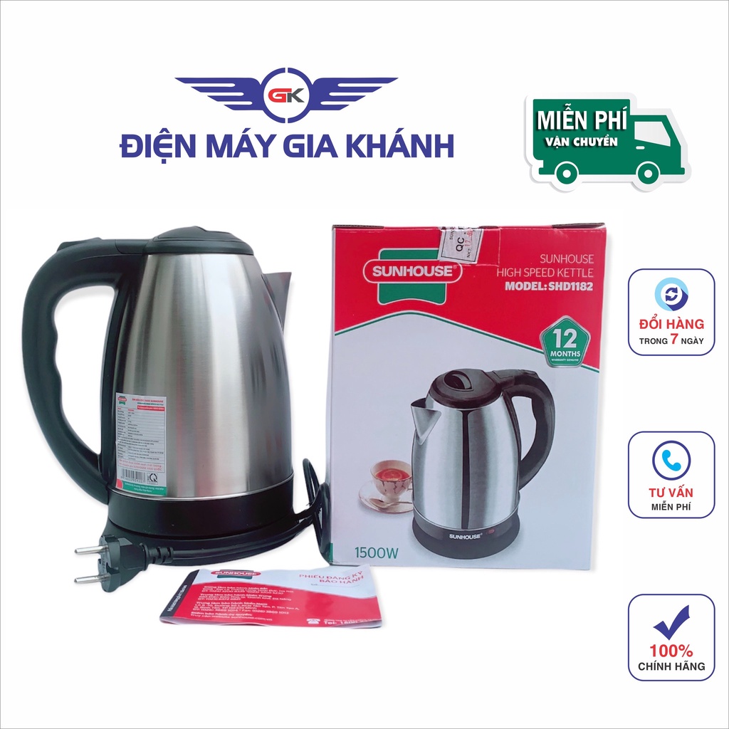 Thiết Bị Điện Gia Dụng > Đồ gia dụng nhà bếp > Ấm đun siêu tốc || Ấm Siêu Tốc Inox 1.8 Lít Sunhouse SHD1182- có đèn báo, tự ngắt khi sôi nướcCòn hàng
