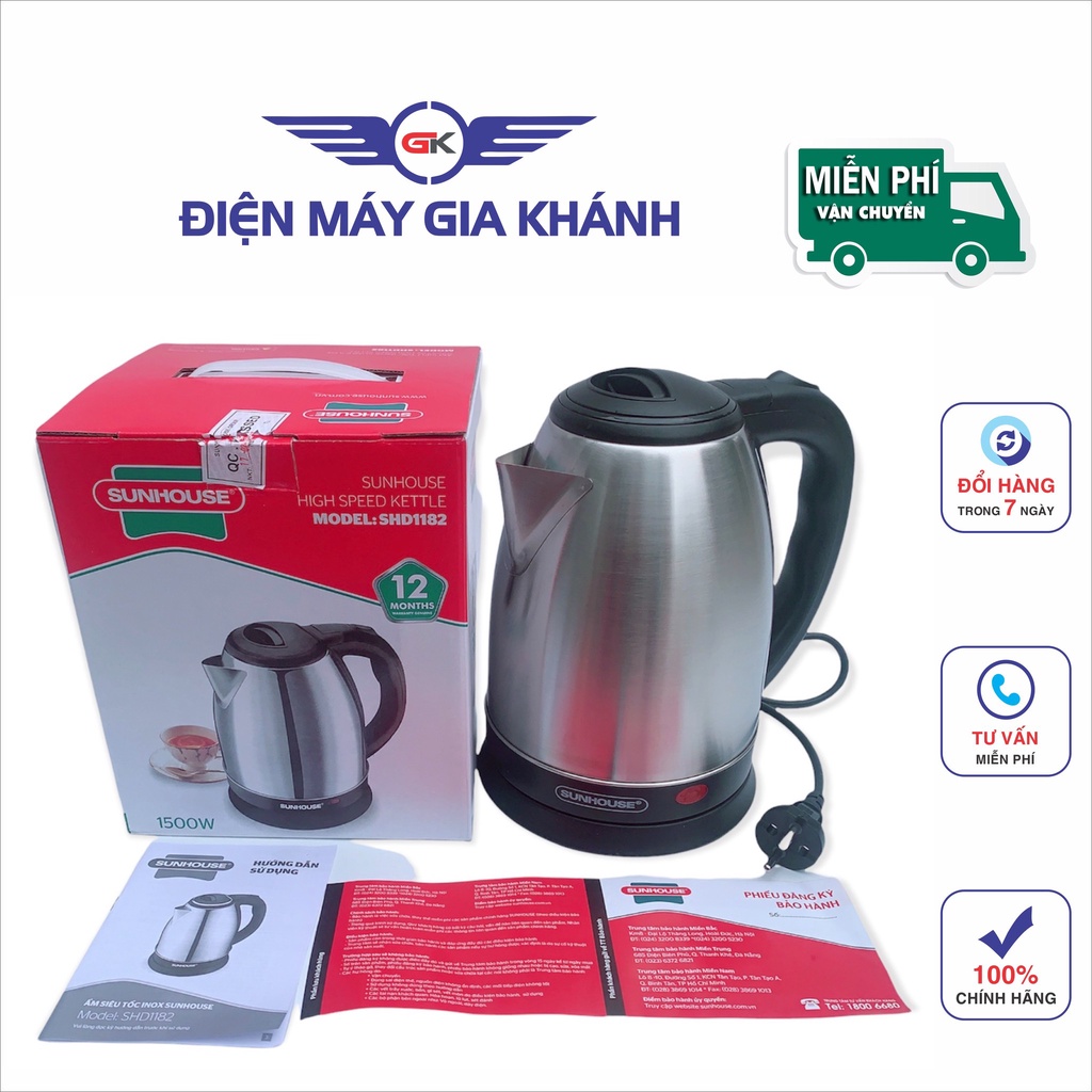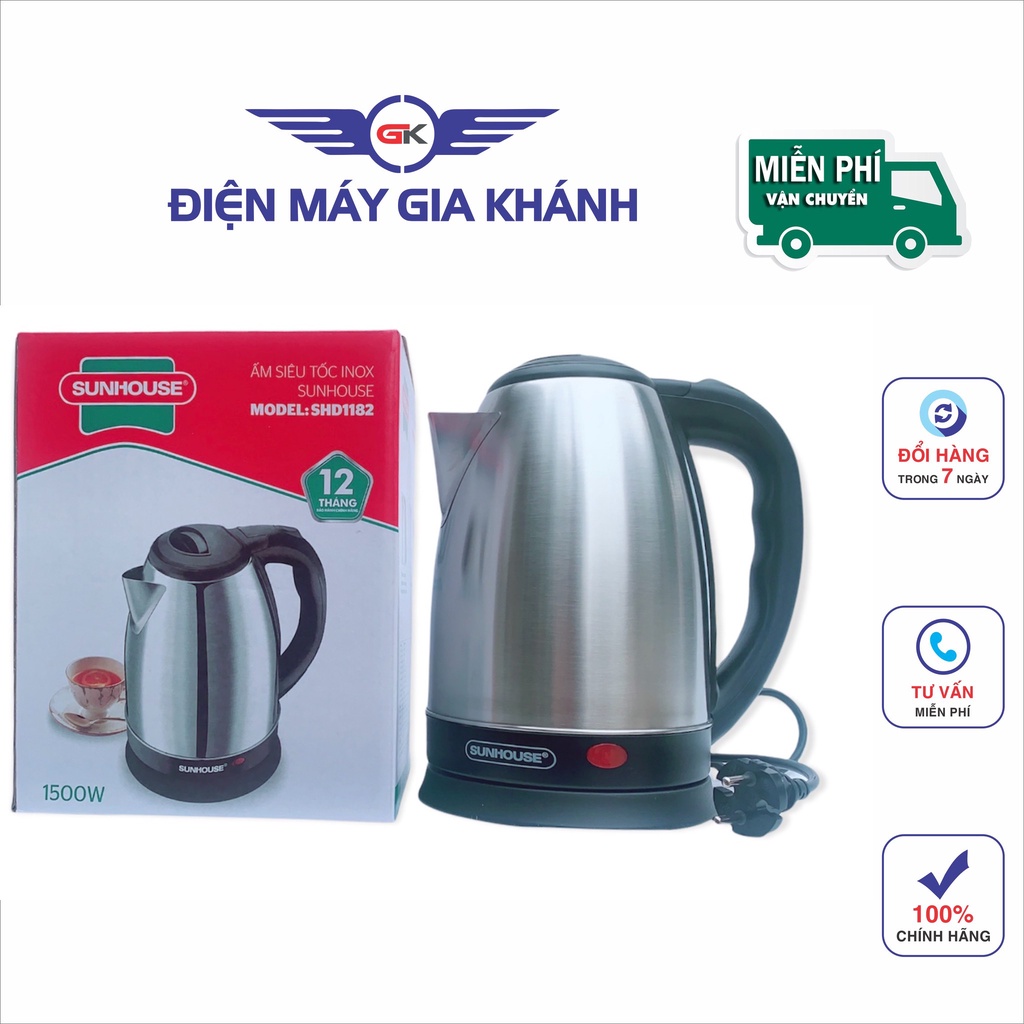 Giới thiệu Ấm Siêu Tốc Inox 1.8 Lít Sunhouse SHD1182- có đèn báo, tự ngắt khi sôi nước
