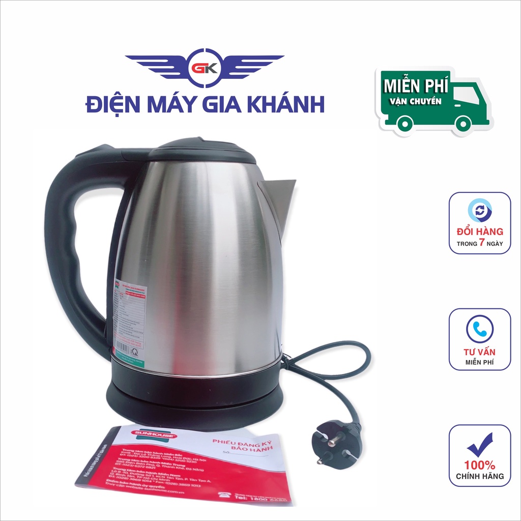 Ấm Siêu Tốc Inox 1.8 Lít Sunhouse SHD1182- có đèn báo, tự ngắt khi sôi nước