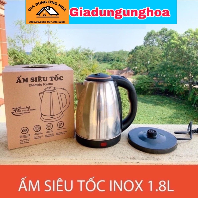 Ấm Siêu Tốc Inox 1,8 Lít Electric Kettle Chính Hãng Đun Sôi Cực Nhanh
