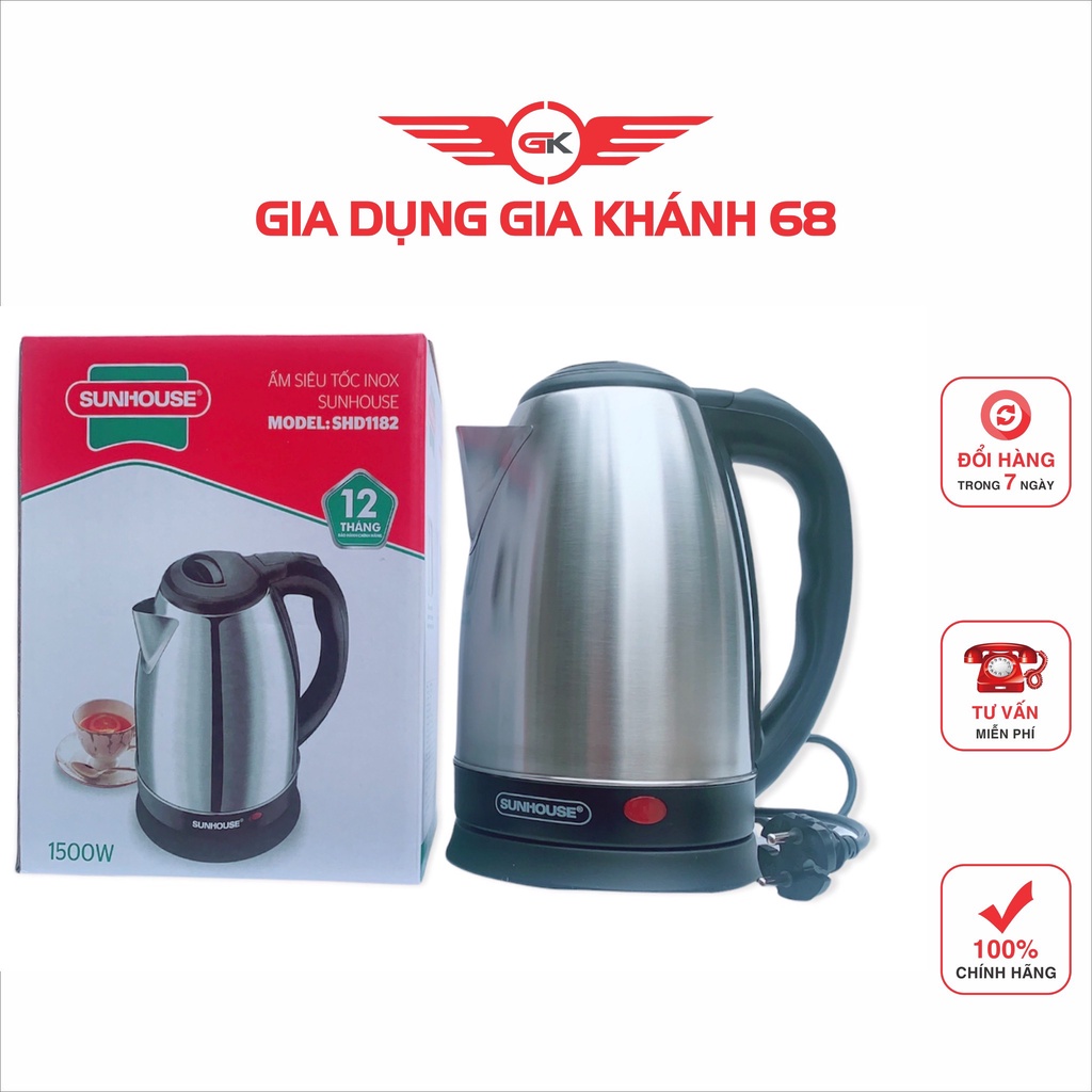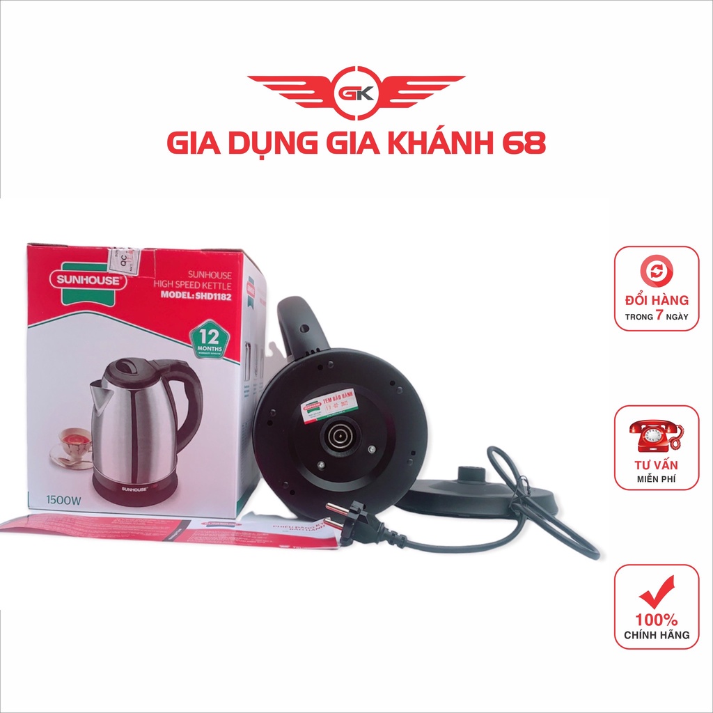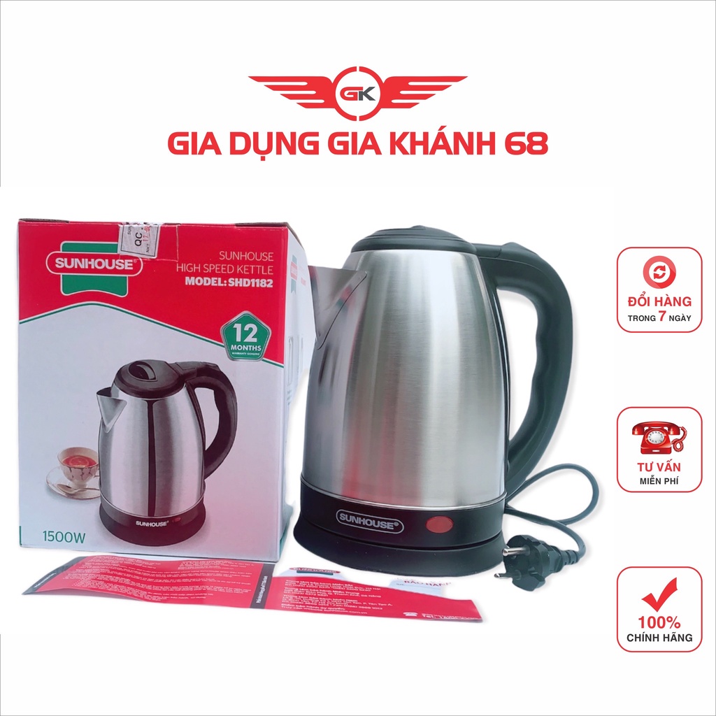 Thiết Bị Điện Gia Dụng > Đồ gia dụng nhà bếp > Ấm đun siêu tốc || Ấm Siêu Tốc inox 1.8 Lít Sunhouse SHD1182- Có Đèn Báo-Tự Ngắt KHi Sôi Nước-Hàng Chính HãngCòn hàng