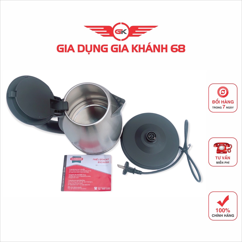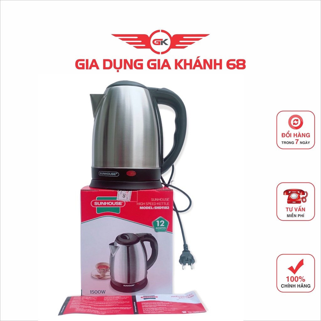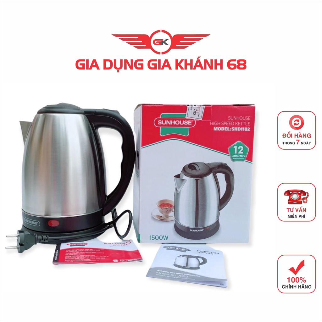 Thiết Bị Điện Gia Dụng > Đồ gia dụng nhà bếp > Ấm đun siêu tốc || Ấm Siêu Tốc inox 1.8 Lít Sunhouse SHD1182- Có Đèn Báo-Tự Ngắt KHi Sôi Nước-Hàng Chính HãngCòn hàng