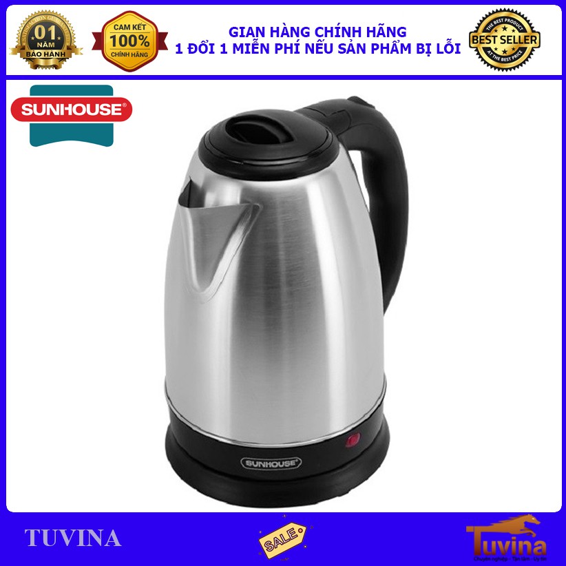 Thiết Bị Điện Gia Dụng > Đồ gia dụng nhà bếp > Ấm đun siêu tốc || Ấm Siêu Tốc Inox 1.8 Lít Sunhouse SHD1182 - Hàng Chính Hãng (Bảo Hành 12 Tháng)Còn hàng