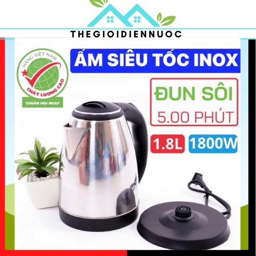 Ấm siêu tốc inox 1.8L Electric kettle loại tốt, đun nước nhanh nóng, tự ngắt khi nước sôi