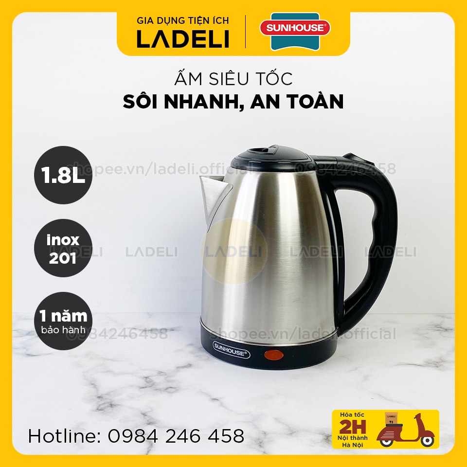 Ấm siêu tốc inox 1.8L SUNHOUSE SHD1182 bảo hành 12 tháng