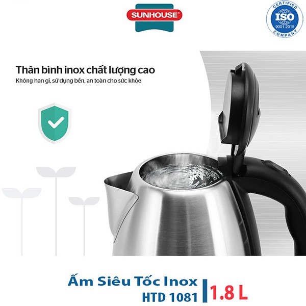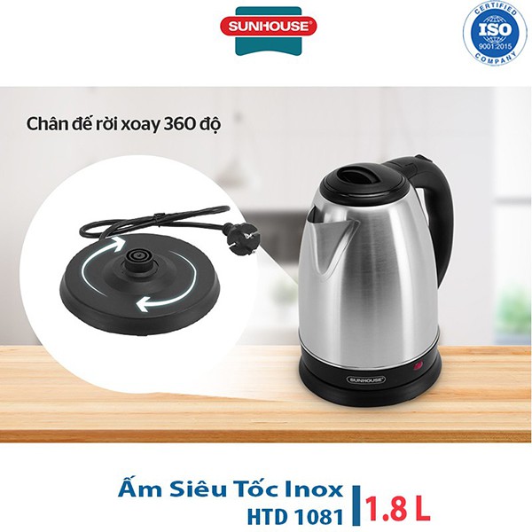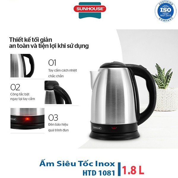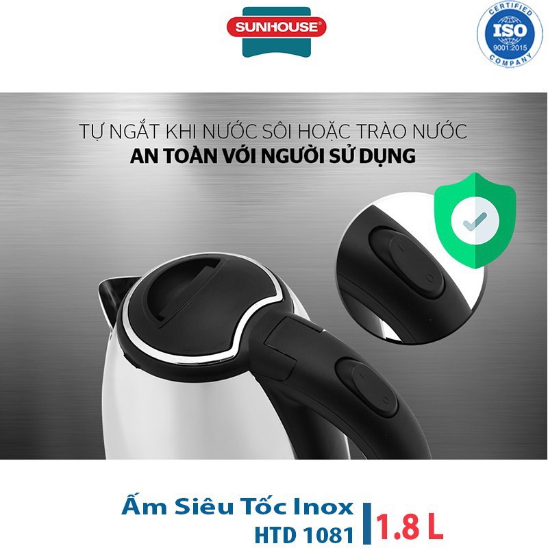 Thiết Bị Điện Gia Dụng > Đồ gia dụng nhà bếp > Ấm đun siêu tốc || Ấm Siêu Tốc inox 1.8L Sunhouse Happy Time HTD1081Còn hàng