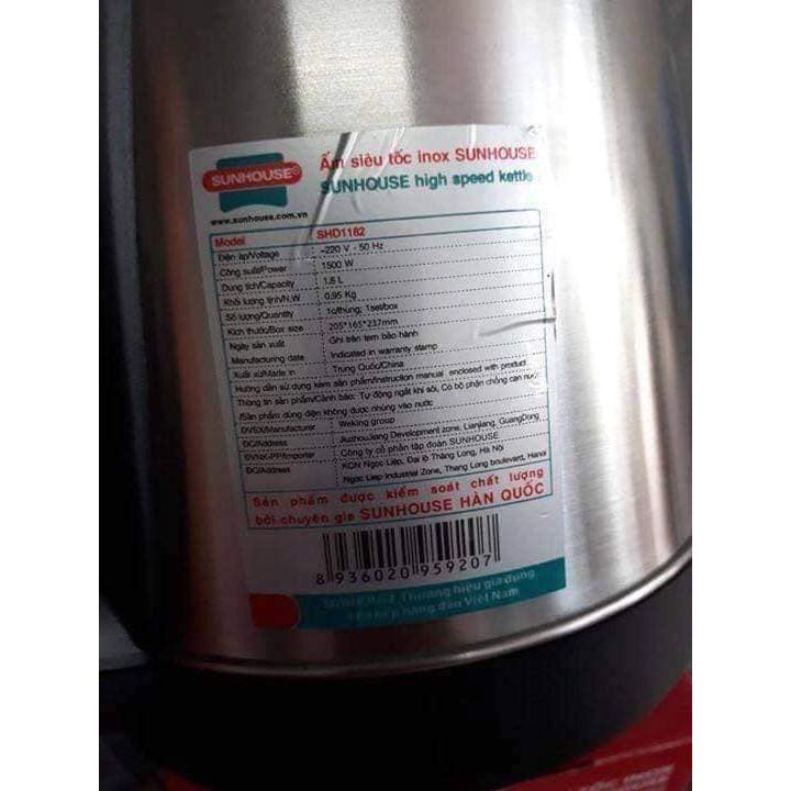 Ấm siêu tốc Inox 1.8L SUNHOUSE SHD1182