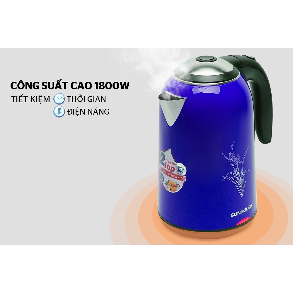 Giới thiệu [Mã ELHADEV giảm 4% đơn 300K] Ấm siêu tốc inox 2 lớp 1.7 L SUNHOUSE SHD1382, Công suất 1800W, inox 304 siêu bền
