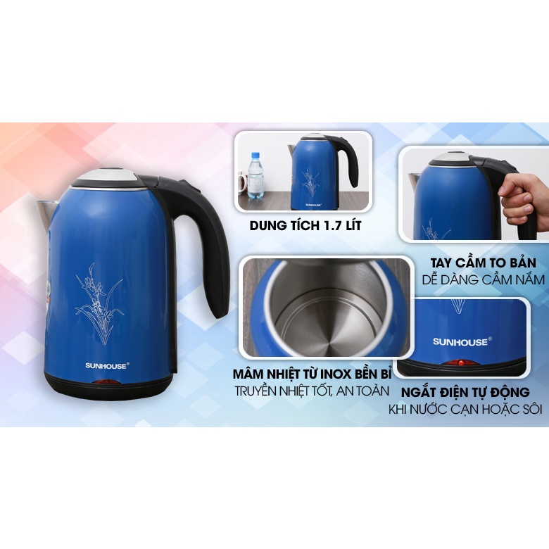 Giới thiệu Ấm siêu tốc inox 2 lớp 1.7 L SUNHOUSE SHD1382B